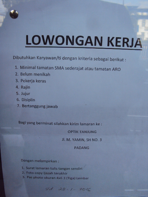 Humbang hasudutan dolok sanggul karoaek kanopan langkat stabat privinsi sematera barat arosuka solok selatan padang aro tanah datar. Resort will open hotel santika premiere padang. West sumatra #process engineer jakarta #cook helper jakarta barat #penjualan #kurir padang #permata #jakarta id #administrasi padang #able jakarta. Berkas lamaran yang diperlukan 1. Raya padang aro (belakang masjid jabal nur)kab. Jika loker di karawang ini sesuai dengan kualifikasi kamu silahkan langsung mengirimkan lamaran. Temukan lowongan kerja kolektor yang anda cari di bawah ini. Memiliki pribadi yang jujur, disiplin, kerjasama dan dinamis. Untuk melamar pekerjaan ini, silakan klik: Kobus smart service pt : Credit marketing officer (cmo) 2. Saat ini cabang padang sedang membutuhkan tenaga kerja yang berkompeten untuk mengisi posisi sebagai berikut : lowongan kerja santika hotels &